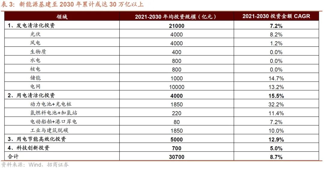 (5)小结:新能源基建年均投资约3万亿,规模不可小觑
