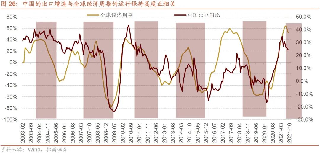 从过去的数据来看,中国的出口增速与全球经济周期的运行还是保持高度的正相关。