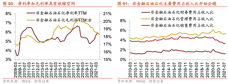 1、整体估值:考虑盈利增长后,全A/非金融石油石化2022年市盈率为10.7X/16.9X