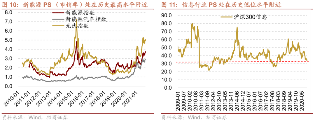 新能源盈利不稳定,从PS (市销率)的角度,处在历史最高水平附近。