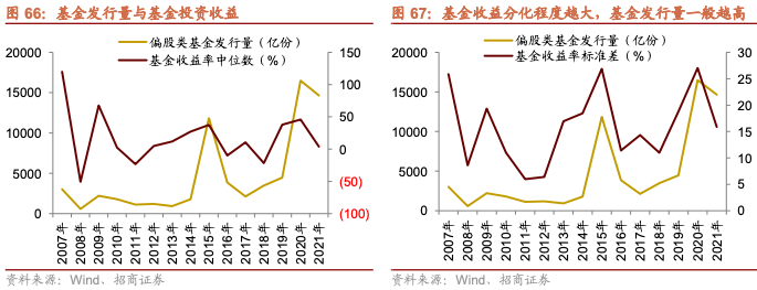 除此之外,由于基金持有人趋势性的投资行为,也使得在某些行业和板块表现比较好,相关行业主题基金或重仓相关行业的基金业绩较好时,会受到更多投资者的追捧。增量资金的持续涌入容易形成正反馈,从而进一步推高了前期较优板块的估值水平。