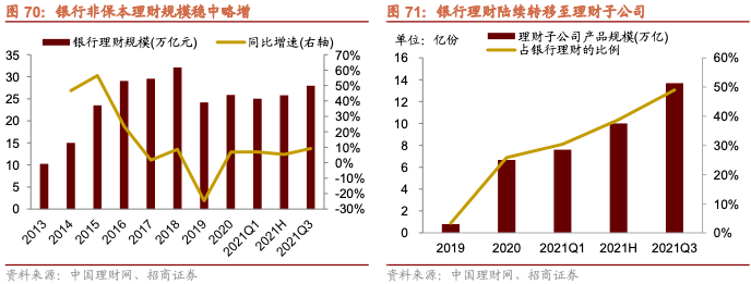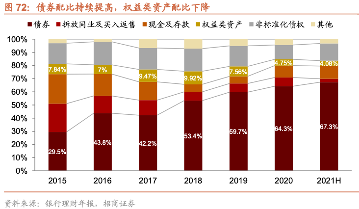 天下熙熙,皆为利往。居民在评估房产和基金的投资回报率时,会参考过去历史的回报水平。而我们观察到在2012年之后,基本规律是当一线城市的三年年化回报率高于混合基金时,则投资者更容易去买房地产;而当混合基金在经历一段时间收益率累计之后,超过了一线城市房产的三年年化回报,则居民更容易去购买基金。因此2012年之后两轮公募基金和私募基金的大爆发,均出现在房价较为低迷而股票市场表现较好的一段时间之后,分别出现在2014年的三季度和2019年的三季度。目前由于房地产调控并未放松,房住不炒深入人心,房地产税试点有可能会落地。房地产未来预期回报率进一步回落的概率较大。而由于过去三年基金的表现较好,从长期来看公募基金能够提供一个相对较为稳定的10%以上的年化回报。对比不同类型大类资产的相对收益后,我们认为未来居民资产不断转向包括公募和私募的含权理财,将是一个大的趋势。