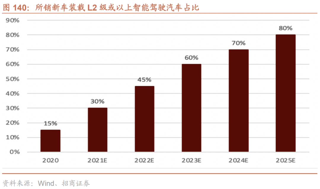 预计2025年我国L2级或以上智能驾驶汽车将销售超2000万辆,渗透率达80%。预计至2025年,我国所销售新车中装载L2级或以上智能驾驶汽车占比将超过80%。我国汽车销量自2017年销售2890万辆登顶后,开始逐渐回落,即使我国今后汽车年销售量仅稳定在2500万辆左右,2025年装载L2级或以上智能驾驶的汽车将超过2000万辆。