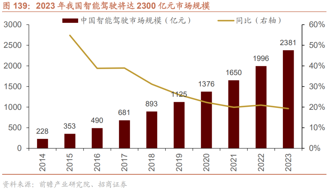 我国智能驾驶空间较大,2023年将达2300亿元市场规模。据前瞻产业研究院发布的《中国无人驾驶汽车行业发展前景预测与投资战略规划分析报告》数据显示,预计2020年中国智能驾驶市场规模为1376亿元,2023年将达2381亿元。