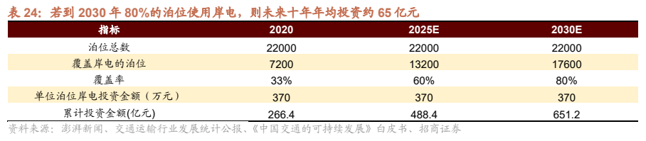 3)电动船舶+港口岸电:年均投资约80亿元