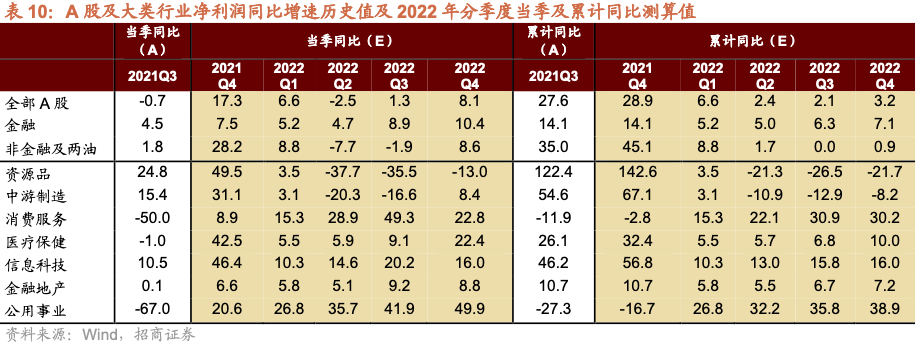 ⚑ 盈利展望:进入2022年后,整体A股盈利增速仍延续逐季放缓的趋势,不过进入下半年后放缓趋势将会收敛,预计全年全部A股和非金融及两油盈利同比增速测算值分别为3.2%/0.9%。消费、信息科技和金融盈利增速相对稳定。