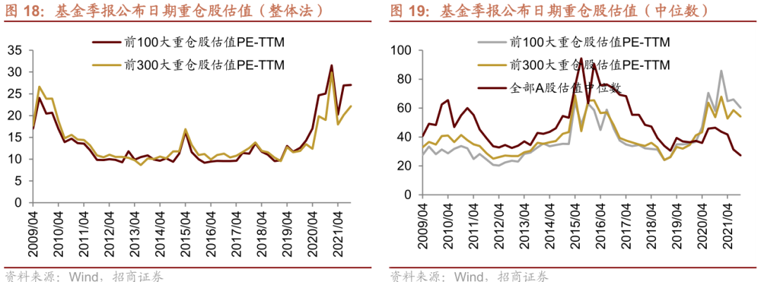2) 机构重仓板块估值基本在历史高位