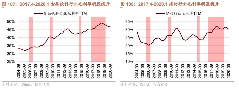 消费品行业估值波动较大,上半年在CPI持续走低的背景下,可选消费和必选消费板块估值均震荡下行;同时受地产产业链景气度下行的影响,以家电、汽车为代表的可选消费估值出现较大程度下滑。下半年,尤其三季度之后,猪价触底出现反弹趋势,部分食品饮料龙头企业开始提价,以食品饮料为代表的必选消费板块估值出现较大提升,可选消费领域估值也有小幅上行。目前汽车行业PETTM处于历史88.7%分位,商贸零售处于历史92.8%分位,消费者服务处于历史86.2%分位,食品饮料处于历史89.1%分位,均处于较高水平。