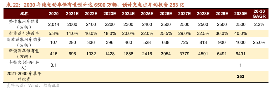 ②车桩比:2015年发改委发布的《电动汽车充电基础设施发展指南(2015-2020年)》中,曾提出2020年车桩比1:1的目标。我们预计2030年实现。