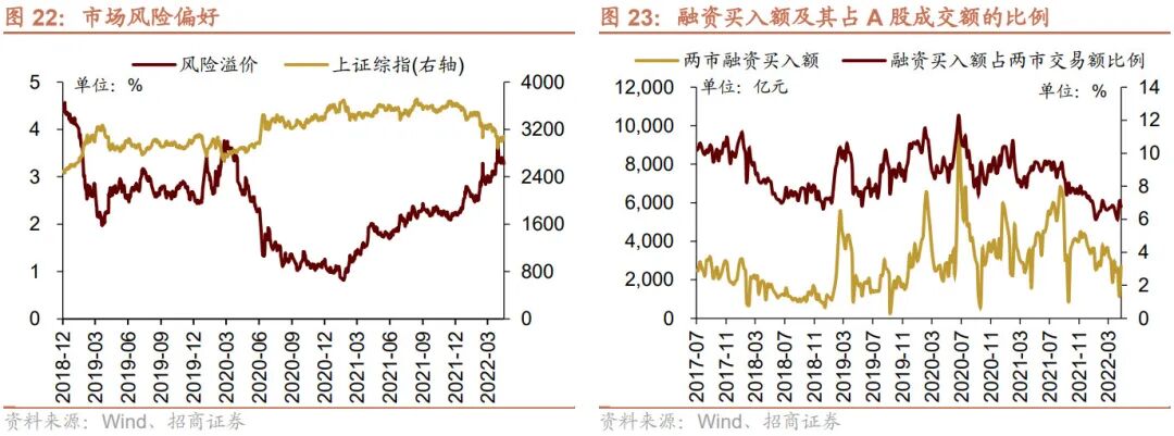5月9日-5月13日,当周融资买入额为2220.7亿元;截止5月13日,占A股成交额比例为5.5%,较前期下降,投资者交易活跃度减弱,股权风险溢价下降。