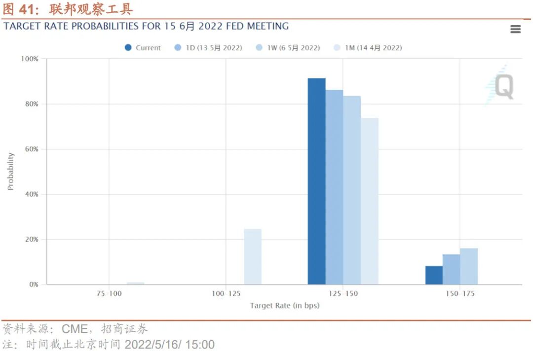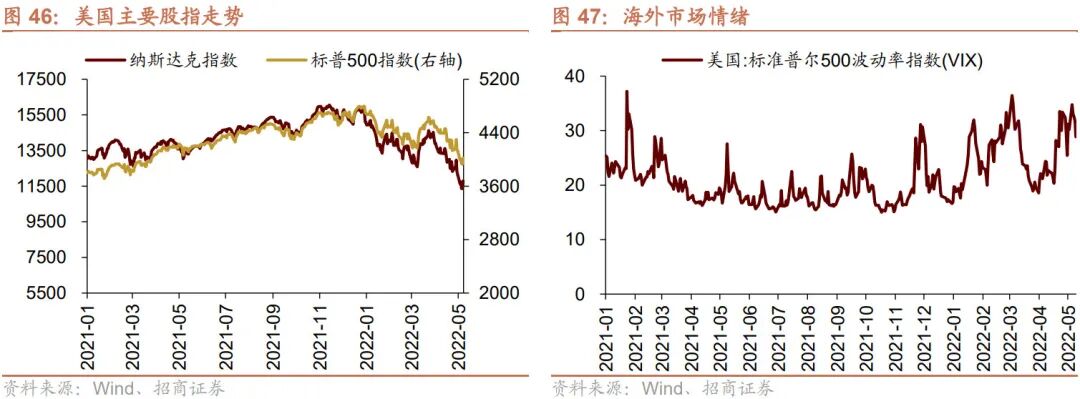 上周VIX指数回落,全周较前期(5月8日)下降3.21点至30.19,市场风险偏好改善。美国通胀压力依然强劲,上周标普500指数下跌1.54%,纳斯达克指数下跌0.21%。