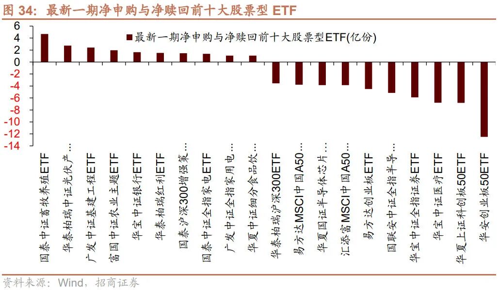 ⚑ 从投资者偏好来看,陆股通净买入规模较高的行业有银行、公用事业、采掘等,净卖出规模较高的行业是有色金属、钢铁、食品饮料等;融资资金买入较多的为汽车、有色金属、化工等,净卖出较多的包括计算机、电气设备、国防军工等。个股方面,陆股通净买入长江电力最多,净卖出贵州茅台最多;融资客大幅加仓比亚迪,卖出较多的为宁德时代、科大讯飞、隆基绿能等。宽指ETF均为净赎回,其中创业板(含创业板50)ETF赎回最多;行业ETF以净赎回为主,其中医药ETF赎回较多,金融地产(不含券商)ETF申购较多。净申购最高的为国泰中证畜牧养殖ETF;净赎回最高的为华安创业板50ETF。
