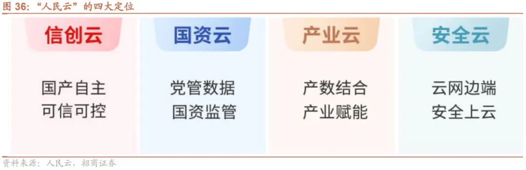 整体来看, “人民云”是人民数据的信息化底座和支撑平台,被定位为大数据“存、管、用”的安全云、自主可控的信创云、国资监管的国资云、开放共赢的行业云,为“国资云”在全国范围内的落地提供了基础平台,有力的保障了信创产业追求本质安全的核心需求。同时 “人民云”拟在京津冀、长三角、珠三角、成渝地区合理规划布局新型数据中心和新型算力中心,有助于国家“东数西算”战略的推进。建议关注国资云、东数西算和信创方面的投资机会。