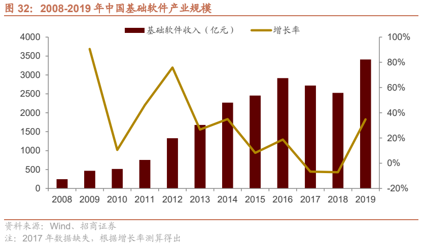 整体来看,中国在操作系统、数据库等软件系统偏底层的领域主要依赖国外产品,呈现出应用软件发展繁荣、基础软件亟待开发的局面。随着数据安全、网络安全、安全可控等目标的提出,国产化软件正在崛起。建议关注基础软件和工业软件方面的投资机会。