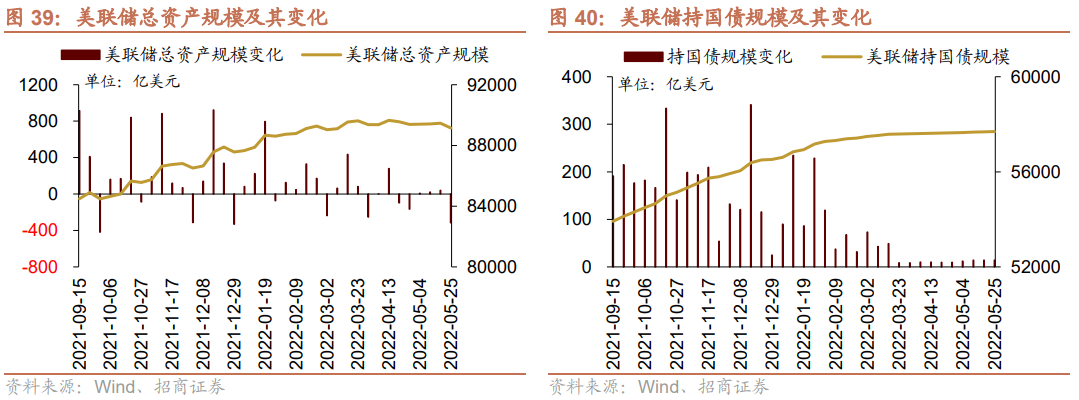 最近一周美联储总资产规模缩小。截止5月25日,美联储持有资产规模89142.81亿美元,相比前期(5月18日)缩小316.17亿美元。其中,持有国债规模57694.17亿美元,相比前期扩大13.96亿美元。