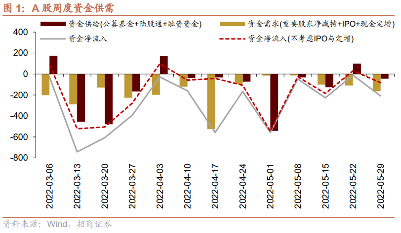 资金供给方面,5月23日-5月27日,新成立偏股类公募基金30.2亿份,较前期增多6.9亿份。股票型ETF较前期净流入,对应净流入29.0亿元。全周整个市场融资净买入0.9亿元,从前期净流出转为净流入,截止5月27日,A股融资余额为14437.9亿元。陆股通本周净流出,当周净流出规模为95.8亿元,从前期净流入转为净流出。