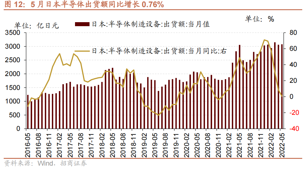 5月日本半导体出货额同比增幅缩窄。5月日本半导体出货额为3077.18亿日元,同比增长0.76%,较上月增幅缩窄7.80个百分点。
