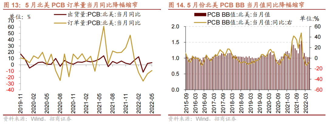 5月份北美PCB BB当月值同比降幅缩窄。5月北美PCB BB当月值为1.03,同比下降7.21,降幅缩窄4.0个百分点。