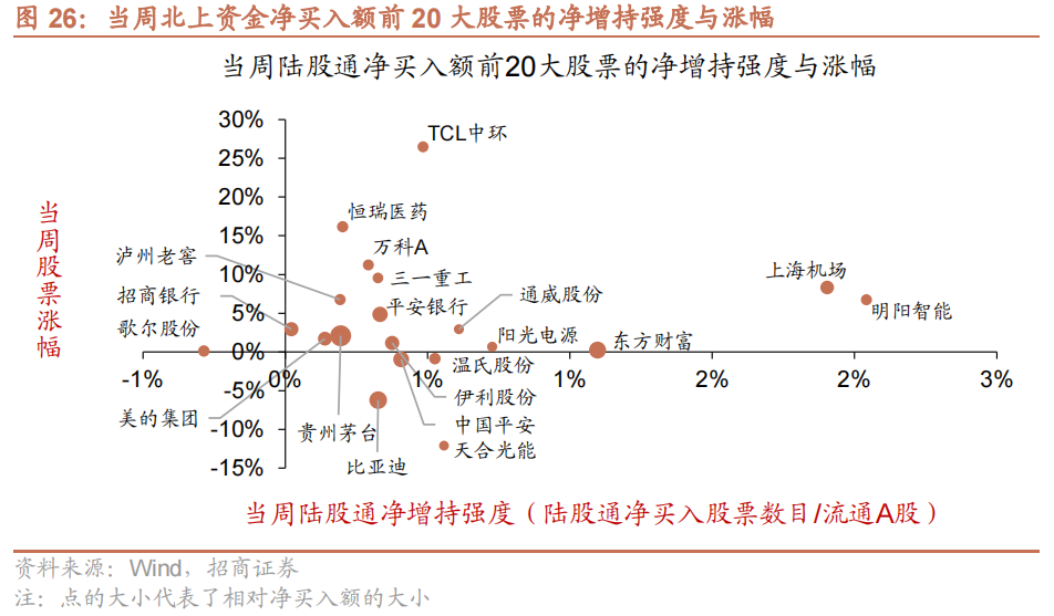 个股方面,北上资金净买入规模较高的为贵州茅台、比亚迪、东方财富等;净卖出规模较高的包括紫金矿业、宁德时代、格力电器等。