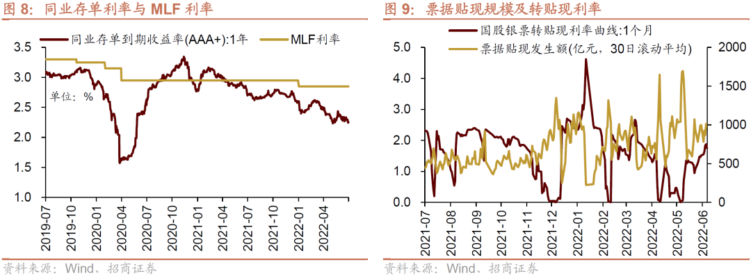 ⚑ 货币市场利率上行,短、长端国债收益率下行,同业存单发行规模扩大,发行利率涨跌不一。截至7月15日,R007下行2.9bp,DR007上行0.6bp,1年期国债收益率下行7.5bp,10年期国债收益率下行5.3bp,同业存单发行规模增加2023.3亿元,1M同业存单利率上行,3M/6M同业存单利率下行。