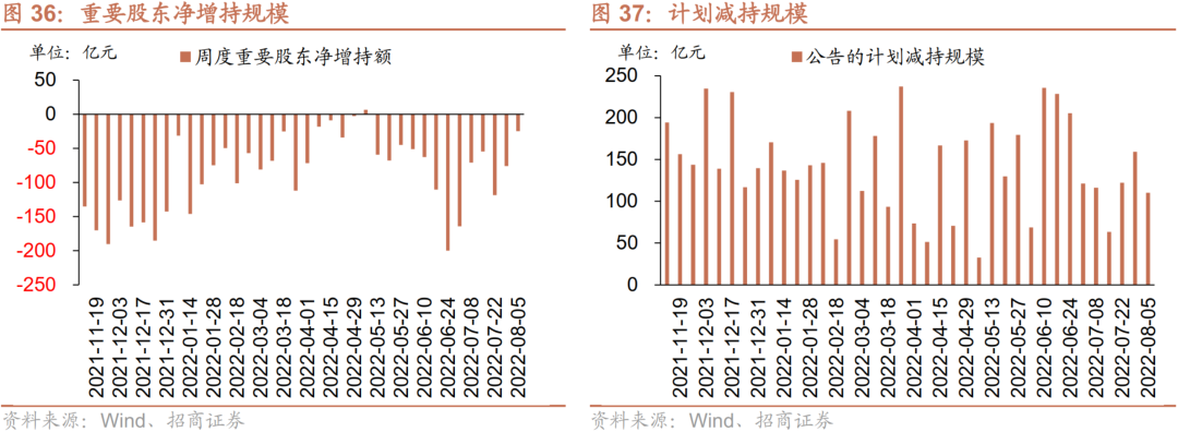 从资金需求来看,重要股东净减持规模缩小,计划减持规模下降。本周重要股东二级市场增持15.9亿元,减持40.8亿元,净减持24.9亿元,净减持规模缩小。其中,净增持行业仅银行;净减持规模较高的行业包括电气设备、机械设备、化工等。本周公告的计划减持规模为110.2亿元,较前期下降。