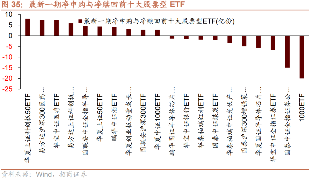 8月8日-8月12日,ETF净赎回,当周净赎回16.2亿份,宽指ETF申赎参半,其中上证50ETF申购较多,沪深300ETF赎回较多;行业ETF以净赎回为主,其中券商ETF赎回较多,医药ETF申购较多。具体的,沪深300ETF净赎回2.3亿份;创业板ETF净申购1.7亿份;中证500ETF净赎回1.6亿份;上证50ETF净申购4.5亿份。双创50ETF净赎回0.6亿份。行业方面,信息技术ETF净赎回2.7亿份;消费ETF净申购2.6亿份;医药ETF净申购19.7亿份;券商ETF净赎回23.4亿份;金融地产ETF净赎回3.0亿份;军工ETF净赎回2.8亿份;原材料ETF净赎回0.1亿份;新能源&智能汽车ETF净赎回3.8亿份。