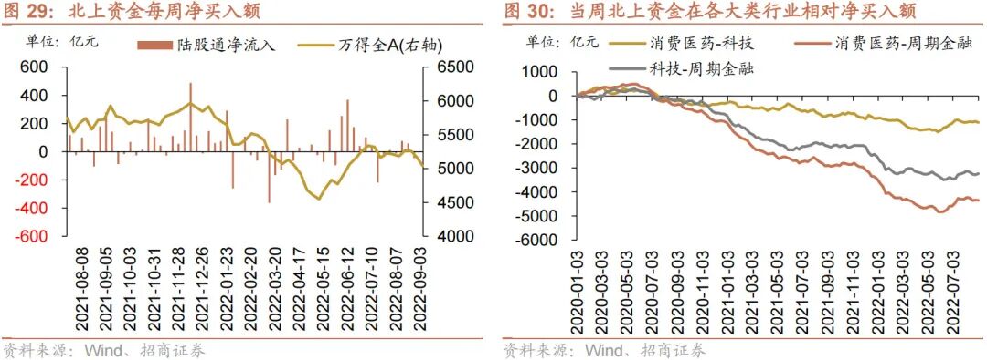 本周(8月29日-9月2日)北向资金净流入4.4亿元,从前期净流出转为净流入。行业偏好上,北上资金净买入规模较高的为电气设备、计算机、家用电器等,分别净买入34.8亿元、15.9亿元、11.9亿元;集中卖出食品饮料、有色金属、银行等,净卖出规模达-34.0亿元、-26.4亿元、-12.3亿元。