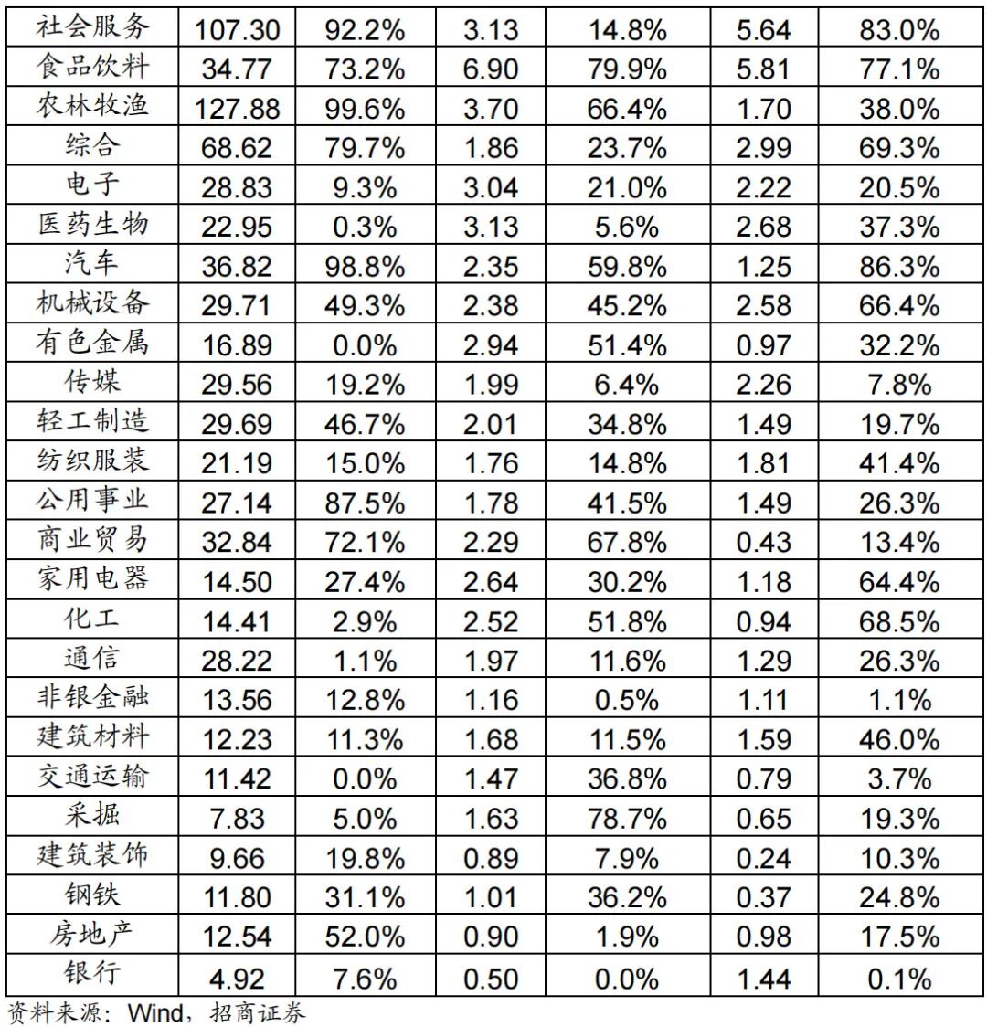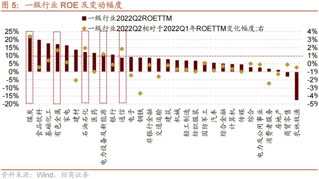 新老能源类盈利增速高企,未来增速中枢或将下移。ROE改善幅度超过1%的行业依次是煤炭(+3.4%)(煤价上行)、石油石化(+2.2%)(油价走高)、有色金属(+1.7%)、电新(+1.2%)(景气度高企),同时这些行业盈利增速也领先于其他行业。考虑到较高的盈利基数,尤其是部分产品价格继续上行动力不足,新老能源类业绩增长中枢可能会出现一定的回落。