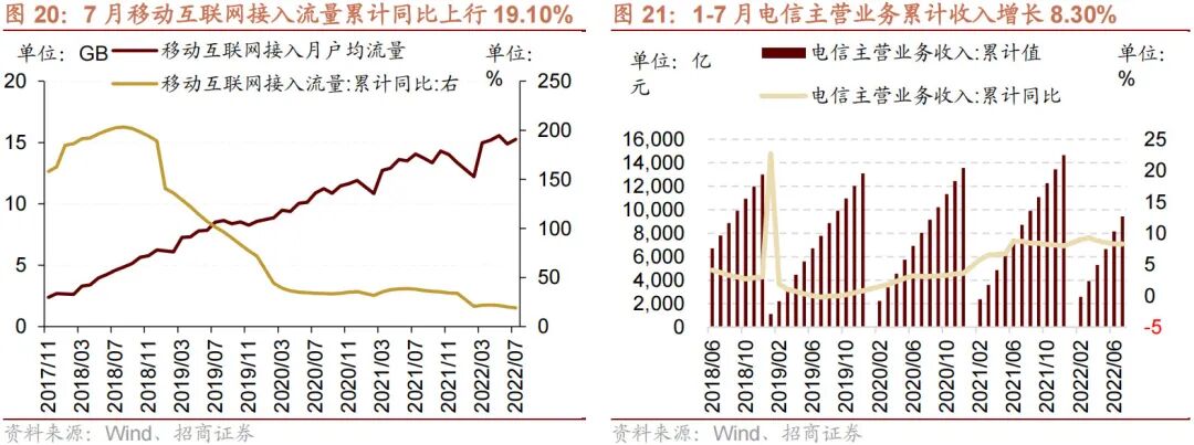 2022年1-7月,电信主营业务累计收入收于9442.00亿元,较去年同期增长8.30%,增速与上月持平。