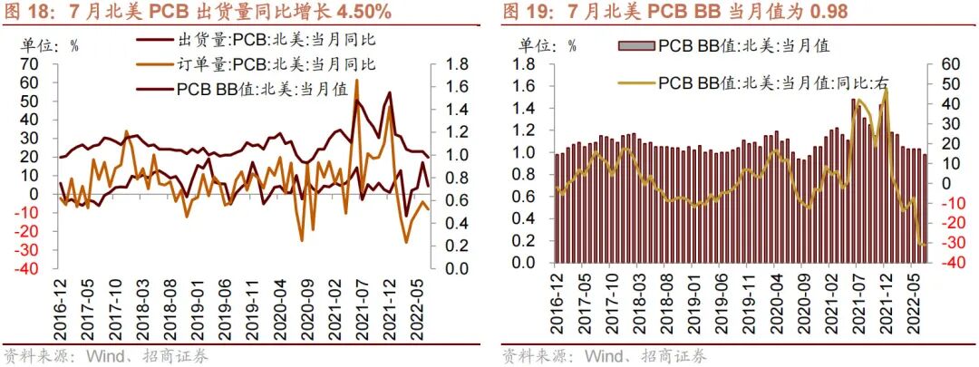 7月北美PCB BB当月值为正。7月北美PCB BB当月值为0.98,同比为-30.0%。