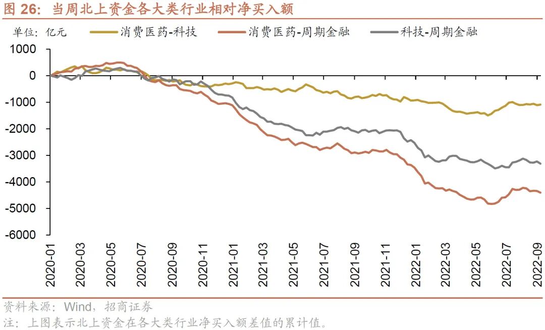 从市场表现来看,美联储议息会议后,长端美债收益率与美元指数快速冲高,主要因为此前市场预期9月加息过后就到达年内鹰派顶峰,但后续点阵图显示2022年美联储仍将加息125个基点,市场对美联储鹰派加息预期增强。北上资金在9月22日净流出36.5亿元,9月23日净流出5.1亿元,边际流出放缓。往后看,此轮加息已临近美联储鹰派加息顶峰,四季度大概率能够看到美联储加息节奏放缓,待后续美国通胀压力得到缓解,美债收益率加速回落将更有利于A股表现。当前全球经济正逐渐走向下行周期,目前国内融资结构正逐渐改善,基建投资大幅回升、制造业投资反弹,对国内经济复苏形成一定支撑。在此情况下,未来北上资金有望逐渐回流。