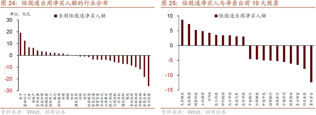 ⚑ 从投资者偏好来看,陆股通净买入规模较高的行业有电子、基础化工、汽车等,净卖出规模较高的行业是电力设备、医药生物、非银金融等;融资资金买入较多的为电力设备、家用电器、轻工制造等,净卖出较多的包括汽车、电子、医药生物等。个股方面,陆股通净买入天齐锂业最多,净卖出贵州茅台最多;融资客大幅加仓海康威视,卖出较多的为江淮汽车、北方华创、上海机场等。宽指ETF均为净申购,其中创业板(含创业板50)ETF申购最多;行业ETF以净申购为主,其中医药ETF申购较多,军工ETF赎回较多。净申购最高的为华宝中证医疗ETF;净赎回最高的为汇添富中证上海国企ETF。