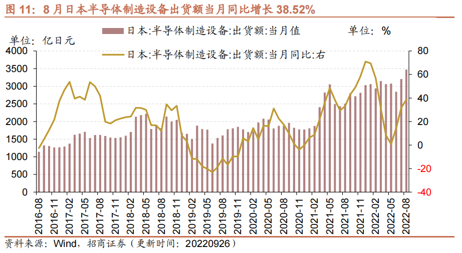 2、 8月日本半导体制造设备出货额同比增幅扩大