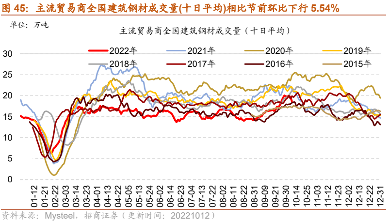 建筑钢材成交量十日均值周环比下行。10月11日主流贸易商全国建筑钢材成交量为13.22万吨;从过去十日移动均值情况来看,主流贸易商全国建筑钢材成交量十日均值为18.68万吨,相比节前环比下行5.54%。