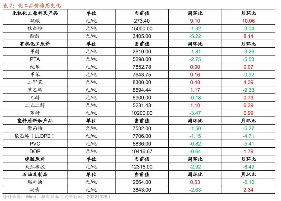 4、Brent国际原油价格上行,有机化工品价格多数下跌