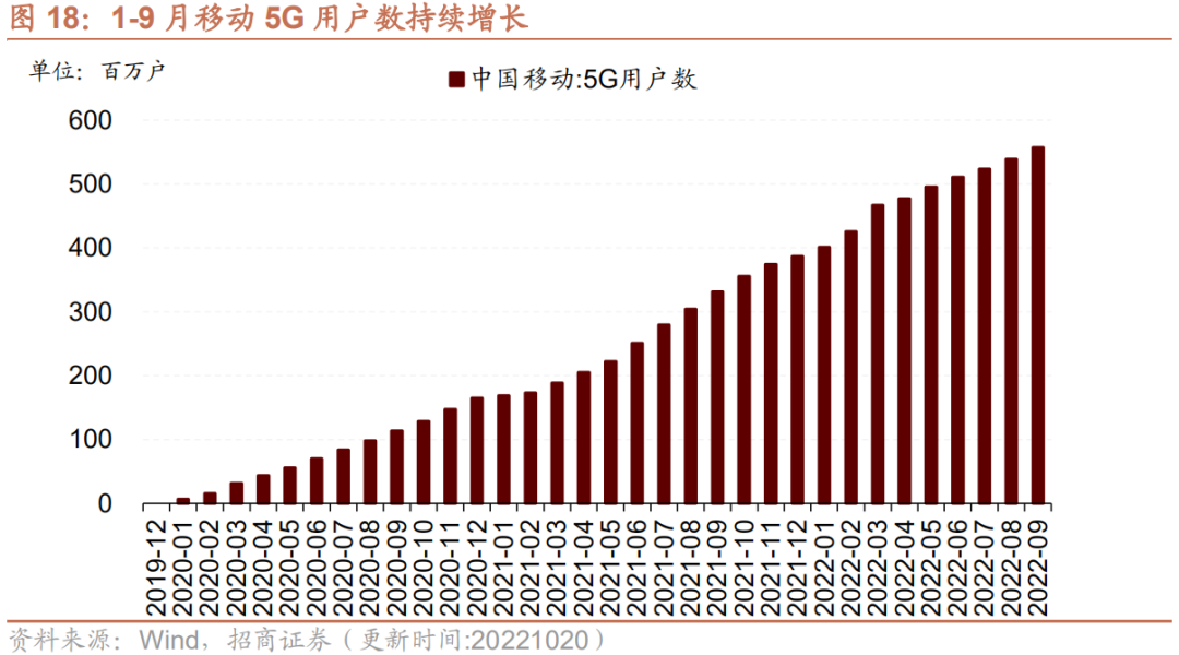 5、9月移动5G用户数同比继续增长