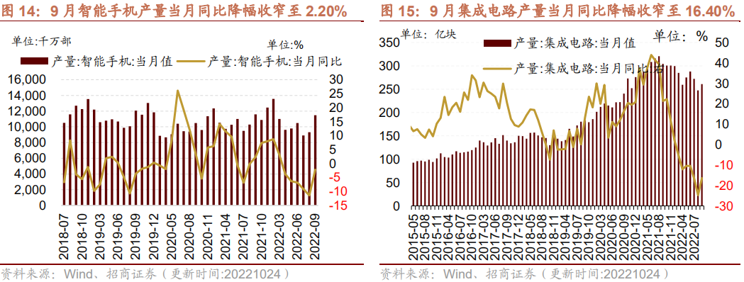 3、9月智能手机、集成电路产量同比降幅明显收窄
