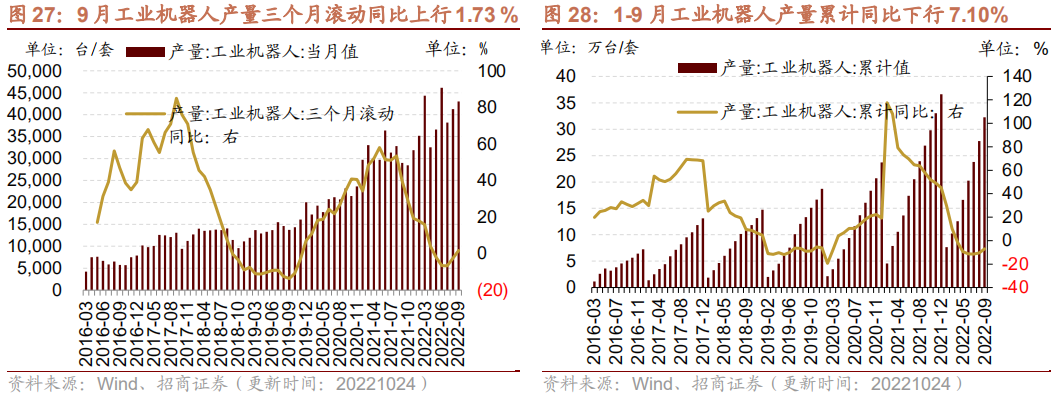 3、9月工业机器人产量当月同比由负转正