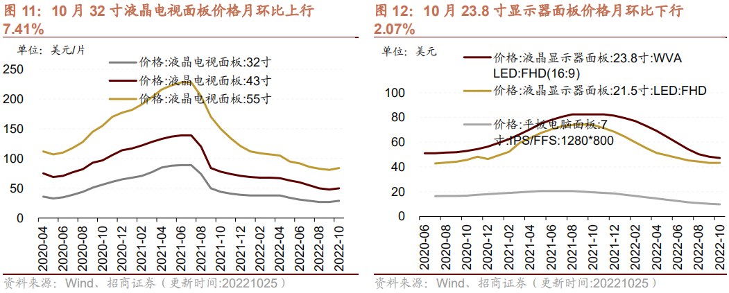 2、10月液晶面板价格多数月环比上涨