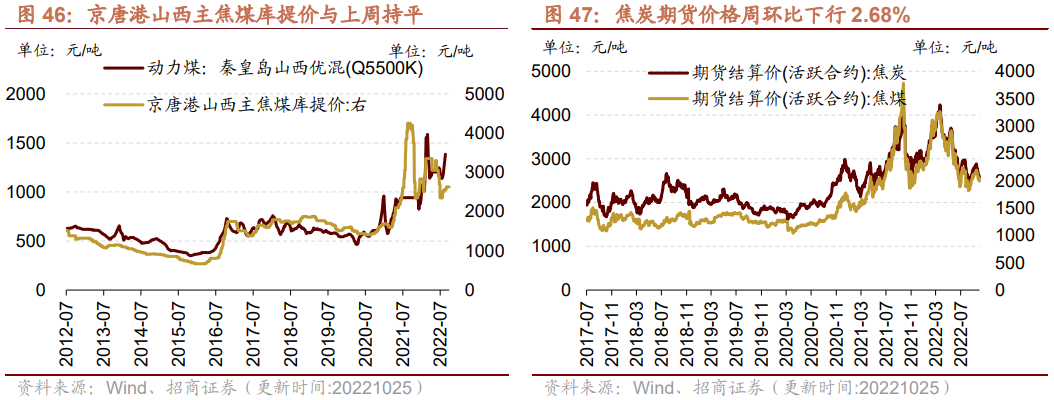 2、动力煤、焦煤、焦炭期货价下行