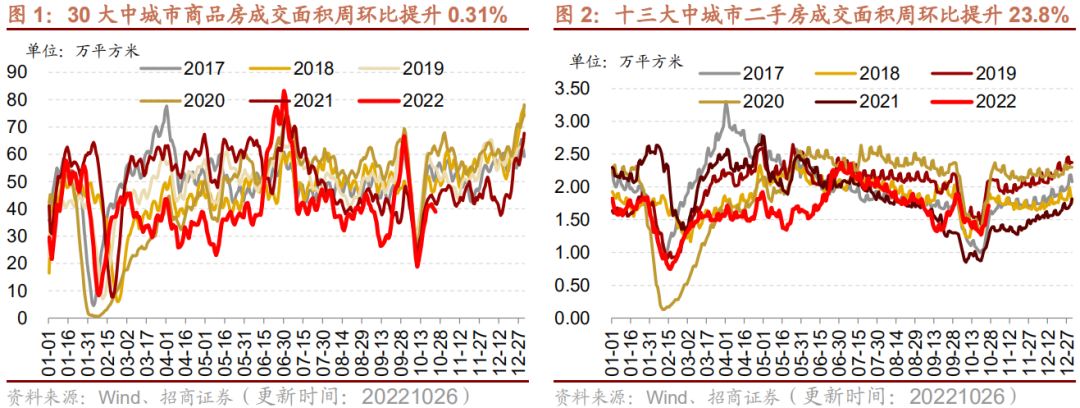 【本周关注】近期商品房市场继续小幅回暖,尤其十三大中城市二手房成交面积提升明显。从9月份的销售来看,商品房销售面积和销售额降幅均收窄,房屋新开工和竣工三个月滚动同比降幅均收窄,其中竣工端表现继续优于开工端。从融资结构上来看,国内贷款单月增速持续高于新开工,一定程度上也说明“保交楼”在逐步落地。基于二手房成交、开工竣工增速以及资金面等多项指标来看,四季度地产基本面预计继续改善。此前资本市场的悲观情绪已经比较充分的反应,后续在政策的持续驱动下,融资端环境或将出现边际改善。推荐继续关注“稳增长”主线下持续内生性现金流创造能力强的龙头房企和产业链持续复苏的机会。