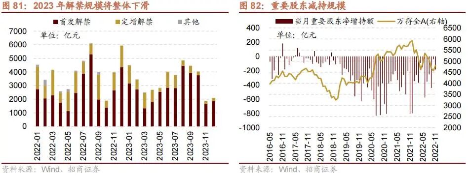 ⚑ 流动性展望:外资回流,股市资金供需转净流入。资金供给端,明年随着市场企稳公募基金发行有望回暖不过老基金赎回压力或相应增大;美债收益率和美元指数双降将引导外资回流;个人养老金落地带来一定增量。资金需求端,IPO与再融资稳中有升,而解禁规模下降有助于缓解减持压力。综合供需测算,2023年A股资金或净流入700多亿元。