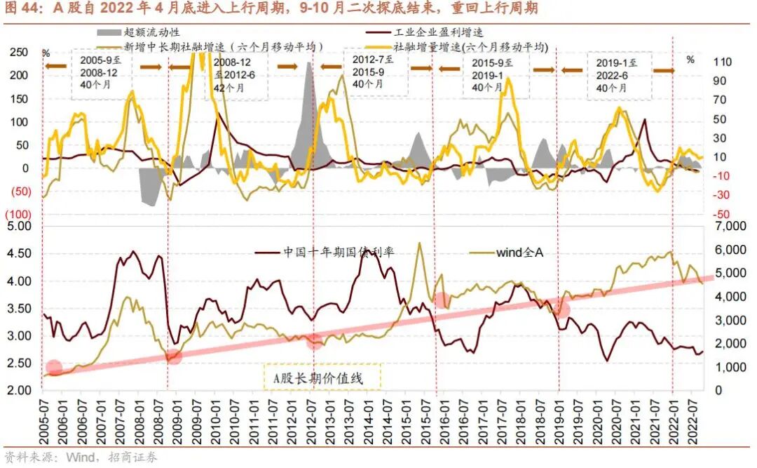 如果以上判断正确的话,则2023年中长期社融增速有望重回上行通道,则A股将会重新回到2022年4月底开启的上行周期,进入震荡上行的阶段。