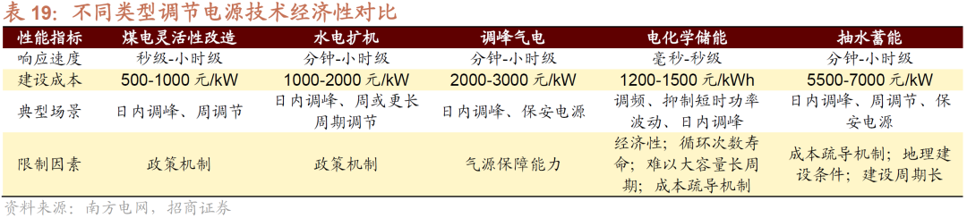 ▶ 灵活性改造、燃气发电等类储能业务有望快速发展。火电灵活性改造有望高增。火电灵活性改造是指对火电机组的运行工况灵活性的优化升级,以降低能源消耗,适应负荷快速、大幅度变化的场景,主要量度指标包括调峰深度(偏离额定负荷深度)、响应速率(输出功率调整速率)、启停时间等。现阶段对电力系统,火电灵活性改造资本开支和运营成本的综合成本理论上有明显的优势,是满足大规模、低成本且能够较快投运的灵活性支撑方案。2021年11月,发改委和能源局发布《关于开展全国煤电机组改造升级的通知》,规划“十四五”期间新建机组全部实现灵活性制造,存量现役机组应改尽改,完成2亿kW改造,增加系统调节能力3000-4000万kW,实现机组灵活规模1.5亿kW,同时要求新建机组全部实现灵活性改造。根据招商电新团队估算,火电灵活性改造的市场空间在500-800亿。燃气发电是能够快速释放灵活性的电源方案。燃气发电相较燃煤具有清洁性(能源效率),控制响应更灵活,空间更集约、建设周期短等优势。近十几年国内燃气发电实现了规模成长,但总体占比不高,中国自本世纪初从开始规模推动燃气发电应用,截止今年8月,国内燃气发电装机1.1亿kW,仅占火电装机总容量的8.6%,发电量贡献仅3%。燃气发电的增长驱动来自电力系统灵活性需求,燃气发电具备启停灵活、输出范围宽、碳排放强度低的优势,在新型电力系统构建背景下,燃气发电是能够快速上规模的灵活性电源。在国内具备气源优势的地区,燃气发电可能会实现较快的增长,西北、中部、西南地区燃气资源相对丰富,或东部沿海有完善的国内外燃气供应渠道的地区具备规模发展燃气调峰电源的可行性。此外,气电价格体系也在逐步完善,一方面气电价格联动能够传导上游燃气价格变化,另一方面依据电源调峰深度提供差异化的电价额度,也会进一步推动燃气发电的收益改善。