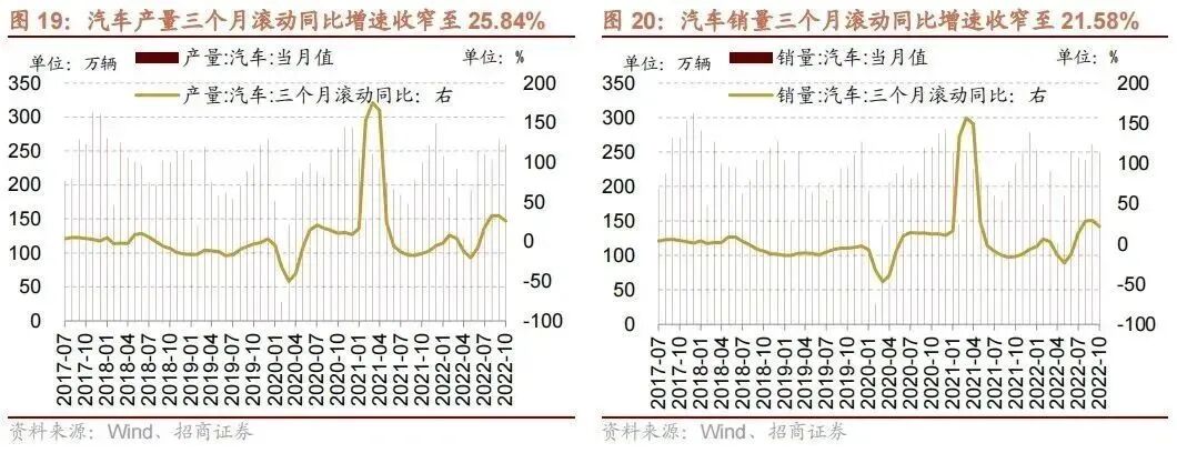 【中观·景气】10月份智能手机产量同比转正,10月国内新能源汽车产销继续维持高速增长。10月份集成电路产量同比降幅明显扩大。10月台股多数IC设计、IC制造、存储器、面板、LED厂商营收同比下行,部分IC制造、PCB、镜头厂商营收同比维持正增长。10月国内汽车产销维持涨势,新能源汽车产销继续维持高速增长。工业机器人产量三个月滚动同比增速明显扩大。1-10月份房屋新开工面积、房屋竣工面积、商品房销售额累计值同比降幅收窄、商品房销售面积同比降幅扩大、房地产开发投资完成额累计值同比降幅扩大。