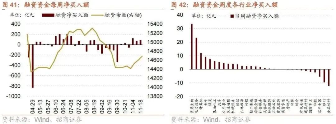 两融方面,融资资金前四个交易日净流入84.7亿元。从行业偏好来看,本周融资资金集中买入医药生物,净买入额达33.5亿元,其他净买入规模最高的行业主要包括电力设备、计算机、电子等;净卖出的主要是食品饮料、银行、家用电器等。从个股来看,融资净买入较高个股包括海康威视、隆基绿能、宁德时代等,净卖出较多的主要包括贵州茅台、中国平安、万科A等。