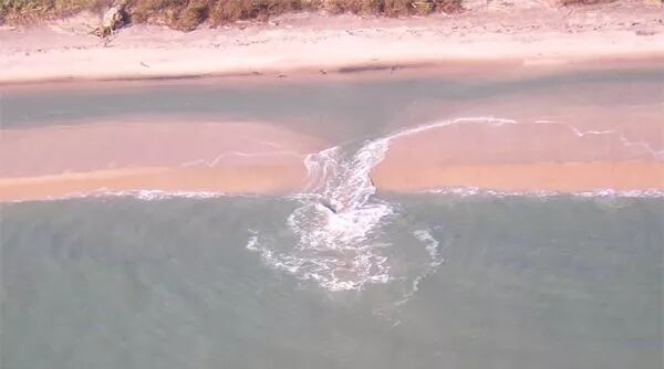 此外,今天一些公众号开始介绍关于“离岸流 Rip Current”的概念,这的确是海边需要注意的一种水流现象。在水下形成了一个小的“裂口”,从而产生强烈离岸水流,通过裂口将人推向海面远方。这是海边出现溺水意外的最常见原因之一。