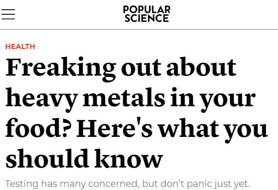 CR的话说的很清楚,大部分美国媒体在报道和引用的时候也做了相对清晰的说明。文章的标题都很简单冷静,并不是“XX种食品有重金属快扔掉”这种微信体。像《大众科学/ Popular Science》的副标题就是写的“测试让很多人担心,但别马上惊慌起来”。
