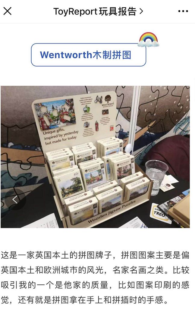 这个来自英国的不规则木质拼图是前年我们在桌游馆的一个小展位上看到的,展位上招待我们的是一个老先生,跟他聊了很久才最终如愿以偿买到了一个小拼图给自己做纪念。而去年和今年再去就没找到这个品牌,没想到被我们的特派员找到了。