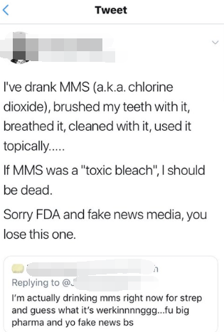 其实喝漂白消毒液可以强身健体这个谣言,已经在这个群体中传播了一段时间了,之前美国食药监局FDA和各大媒体都曝光辟谣过。但辟谣却起到了反效果,反而让这群人更加热衷于传播。